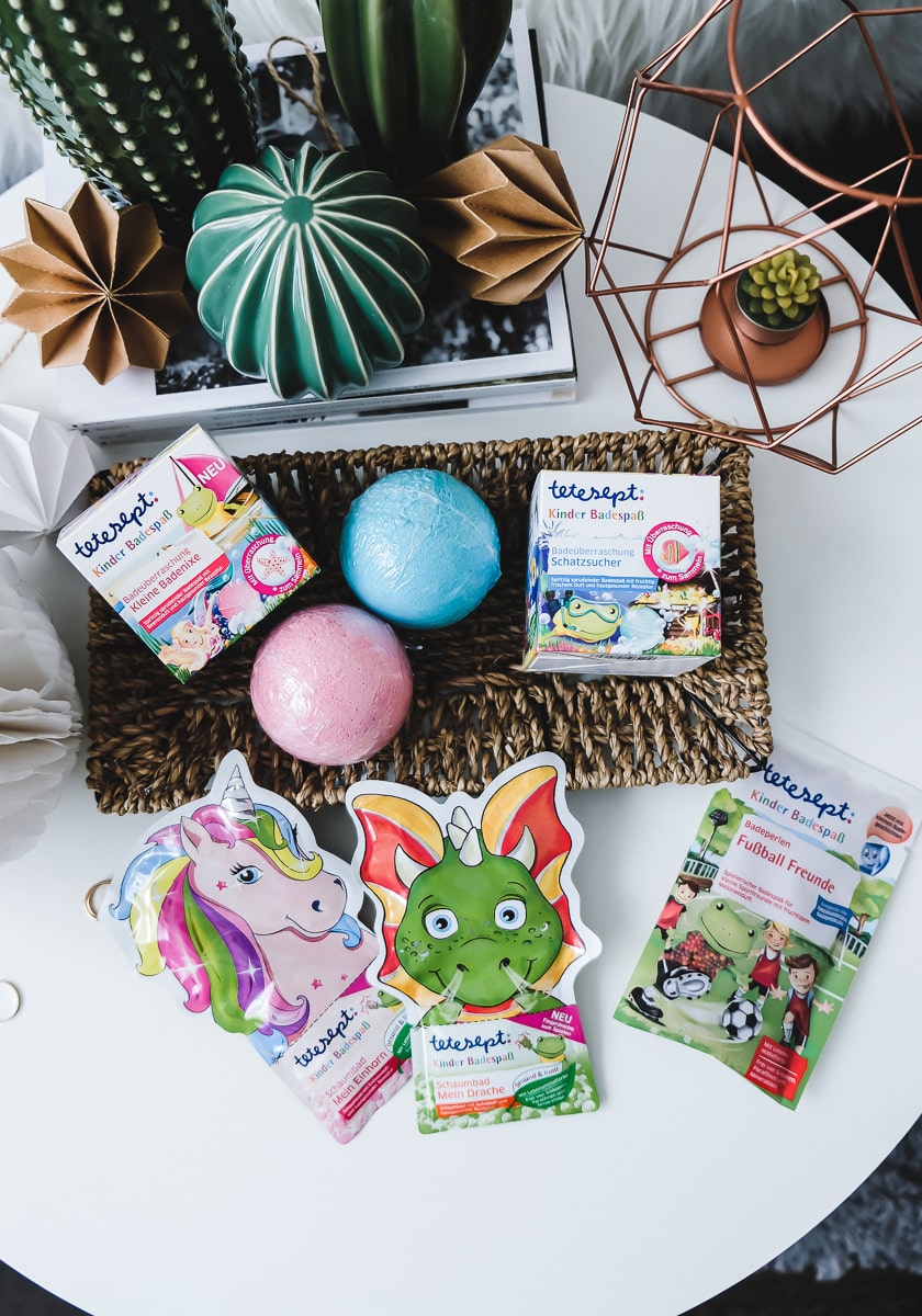 tetesept Badespaß für Kinder Badekugel Badebome Badeschaum Einhorn Drache Badeperlen Fußball Test Review Erfahrungen Mamablog I need sunshine