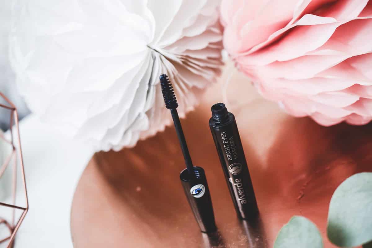 Die vegane Alverde Bright Eyes Mascara mit Bio-Mandelöl ist abgestimmt auf die Augenfarbe. Es gibt Varianten für grüne, blaue und braune Augen. Diesen Effekt kann ich zwar nicht feststellen, dennoch finde ich die Mascara toll. Sie ist eine soilde Mascara für den Alltag, gibt den Wimpern Volumen und färbt sie intensiv schwarz.