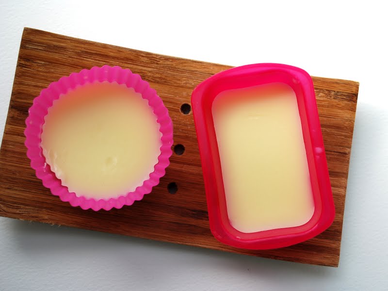 - Das Duftöl dazugeben und die Masse in Silikonförmchen füllen.