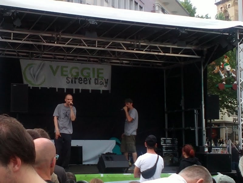 Der Auftritt des veganen Rappers Albino der auch ein aktiver Tierrechtler ist.