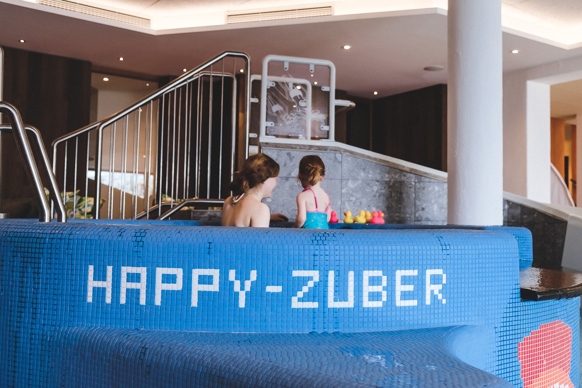 Im abgetrennten Nichtschwimmerbereich des Family-Spa gibt es zwei große Kleinkinderbecken, wo sich auch Babys und Kleinkinder wohlfühlen, sowie eine Rutsche für Kleinkinder, jede Menge Badeenten (meine Tochter war begeistert!) und schönen Rückzugsmöglichkeiten zum Entspannen.