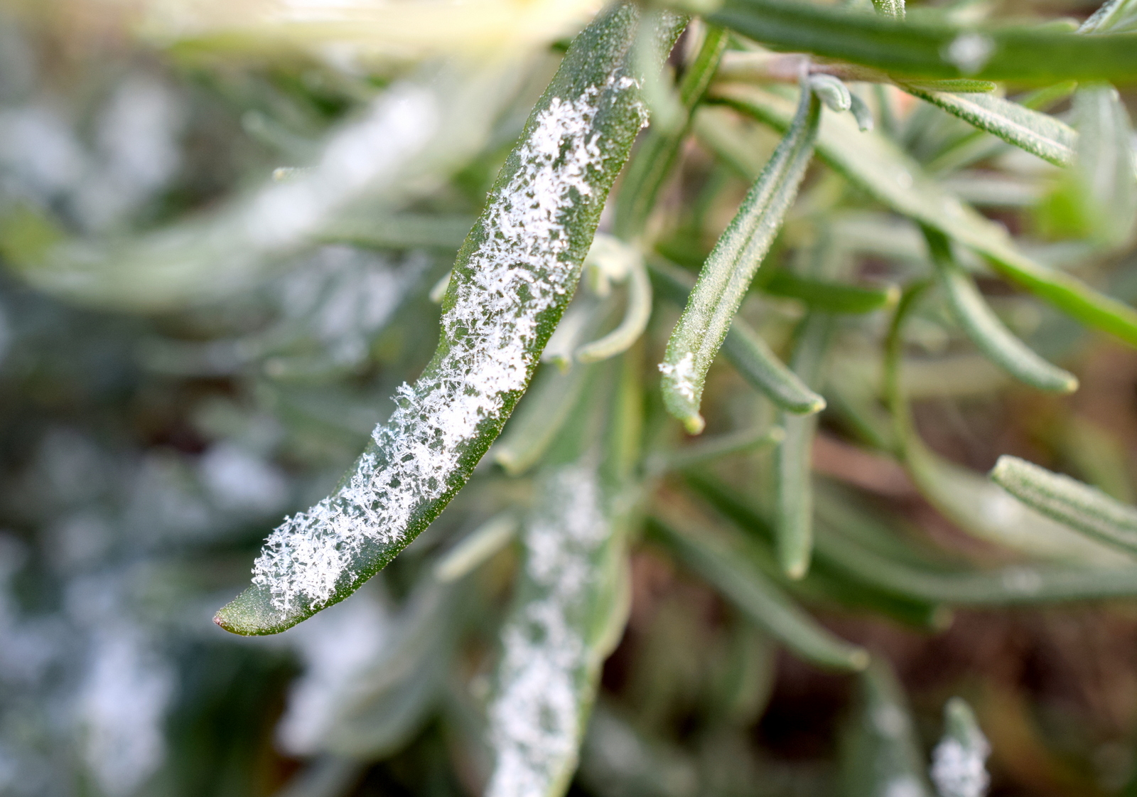 sehr schöne Eisblumen an den Pflanzen!