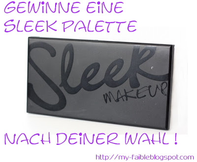 Bei My Faible gibt es ein tolles Gewinnspiel, bei dem ich einfach mein Glück versuchen muss. Denn sie verlost eine Sleek Eyeshadow Palette nach Wahl. Und da ich schon seit einiger Zeit von den Sleek Produkten äußert angefixt bin, würde ich mich über einen Gewinn riesig freuen. Teilnahmeschluss ist der 2. Juli.