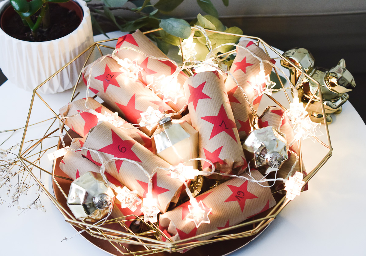 - Einen Korb oder eine dekorative Schale für die 24 Geschenke