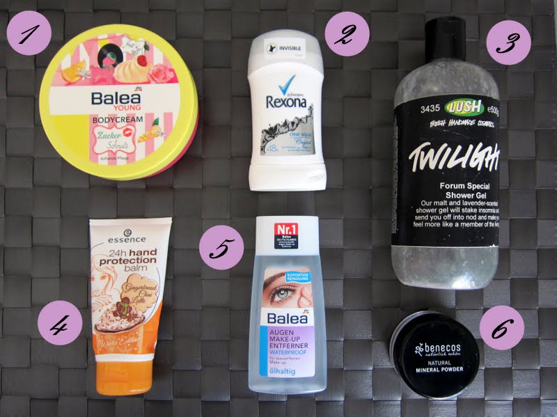 Gefühlt habe ich im März sehr wenig meines Kosmetikbestandes aufgebraucht, doch beim Zusammentragen und Fotografieren musste ich feststellen, dass ich im Februar zahlenmäßig nur ein Produkt mehr aufgebraucht hatte. Also doch gar keine so schlechte Bilanz 😉 Und dann ist auch noch so schön ausgewogen fast jede Kosmetik-Kategorie vertreten: Duschgel, Bodybutter, Deo, Mineralpuder…. Okay, Haarpflege fehlt komplett, aber ich arbeite daran 😉