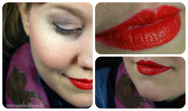 Und hier seht ihr mal meinen Möchtegern-Rockabella Look inklusive verwackeltem Lidstrich 😉 Auf den Fotos trage ich keinen Lipliner, was bei dieser Farbe aber definitiv zu empfehlen ist.