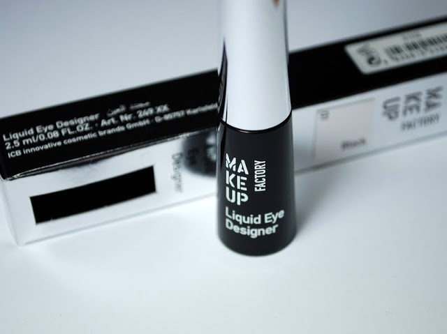 “Der hochpräzise, farbintensive Fluid Liner mit extra präziser Filzspitze ermöglicht, einen schön geschwungenen Lidstrich zu ziehen. Durch intensive Farbe und Deckkraft erscheinen die Wimpern dichter und garantieren einen ausdrucksstarken Augenaufschlag. Außerdem ist der Liquid Eye Designer sehr sparsam – über 800 Anwendungen sind möglich. Er ist schnelltrocknend, parfümfrei und für Kontaktlinsenträgerinnen und empfindliche Augen geeignet.”