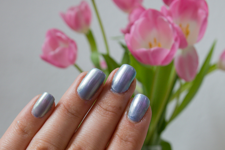 Für eine gute Deckung muss der Lack zweimal aufgetragen werden. Fand ich für einen Metallic Lack eine neue Erfahrung, da hier meist ein Anstrich ausreicht. Die Trockenzeit war ziemlich kurz, dadurch war die zweite Schicht auch schnell auf den Nägeln.