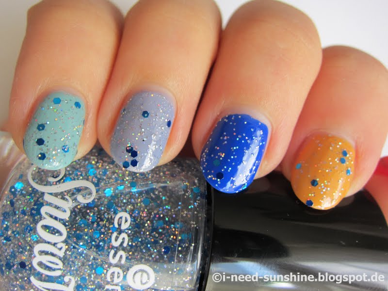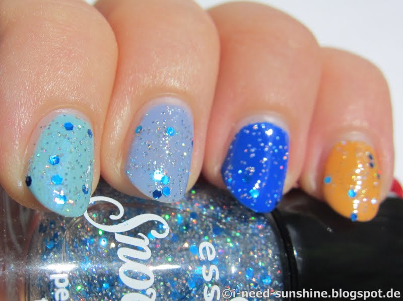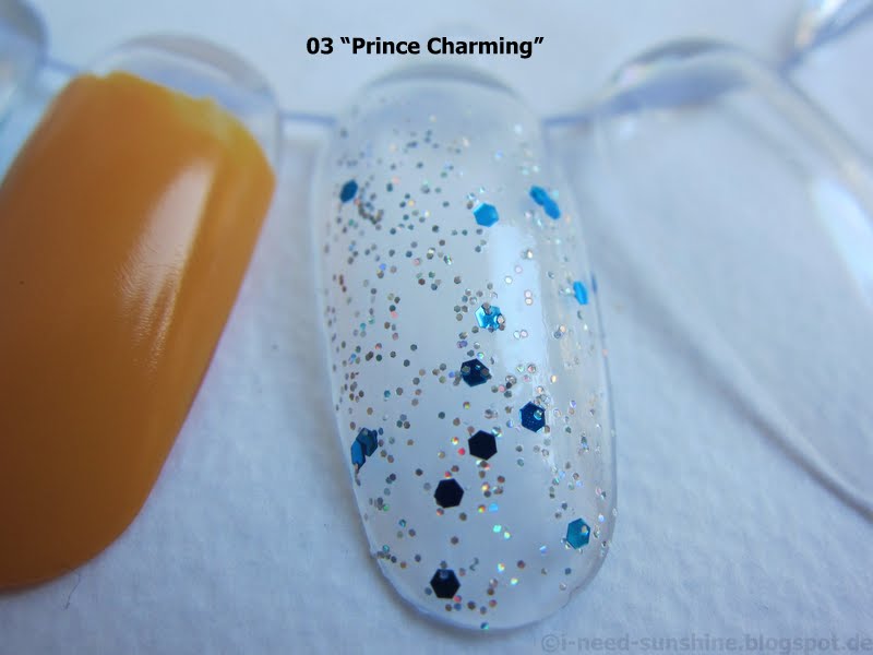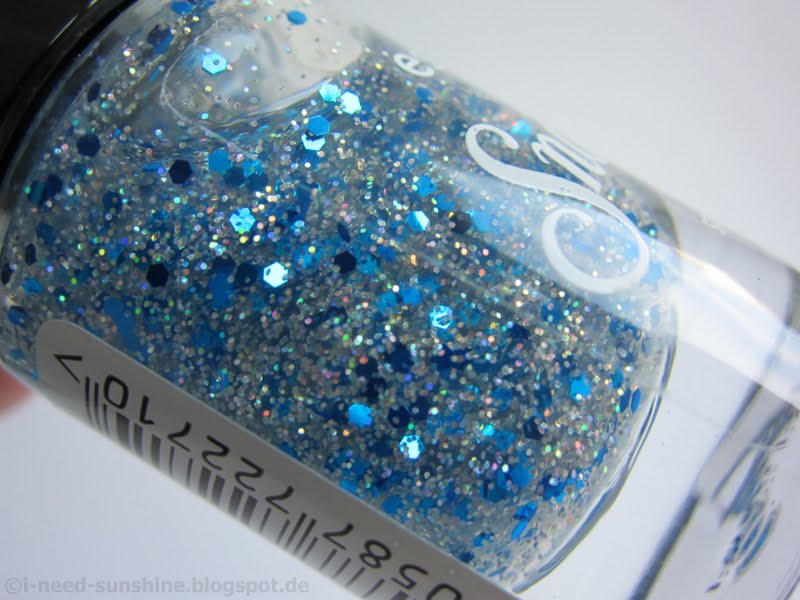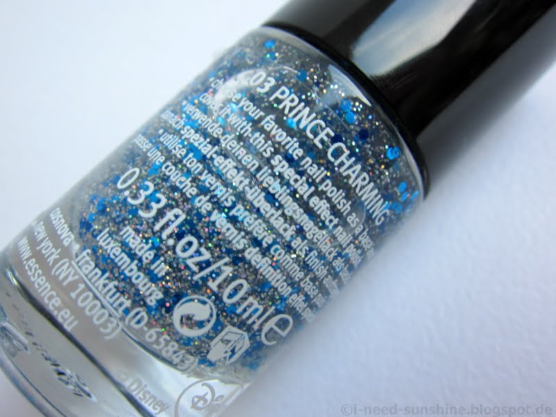 Die “Snow White” Trend Edition umfasst drei Special Effect Topper. Ich habe den “Prince Charming” zugeschickt bekommen, der blaue und holografisch schimmernde Glitzerpartikel enthält. Man muss jedoch mehrere Schichten lackieren, wenn man ihn gleichmäßig auf dem Nagel verteilen will, da sich die größeren Glitzerpartikel sonst gerne ungleich verteilen. Auf jeden Fall sollte man eine Schicht Überlack darüber geben, damit man ein ebenmäßiges Finish hat. Meine Lieblingskombination ist der türkisblaue “Sleepy” zusammen mit “Prince Charming”.
