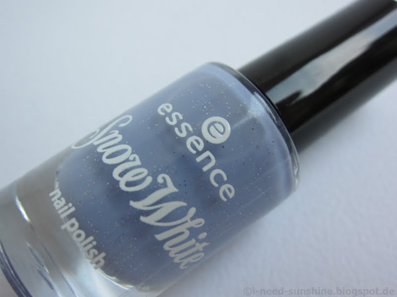 Der Nagellack-Zwerg “Dopey” hat silberne Glitzerpartikel. Die lila Farbe konnte meine Kamera leider nicht originalgetreu wiedergeben, stellt ihn euch also etwas weniger blaustichig vor 😉 Die Deckkraft bei diesem Lack ist leider sehr schlecht, selbst mit zwei Schichten ist das Nagelweiß noch zu erkennen. Durch die groben Glitzerpartikel ist das Ergebnis auch etwas ungleichmäßig, man muss also auf jeden Fall noch ein bis zwei Schichten Top Coat darüber geben.
