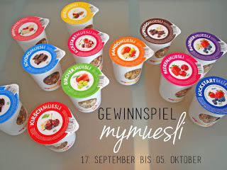 ![]() Ich durfte von mymuesli das 2go Probierpaket testen und das Berry White Choc Müsli ist definitiv meine Lieblingssorte geworden. Ihr könnt übrigens noch bis 5. Oktober eines von drei mymuesli-Probierpaketen gewinnen. |
