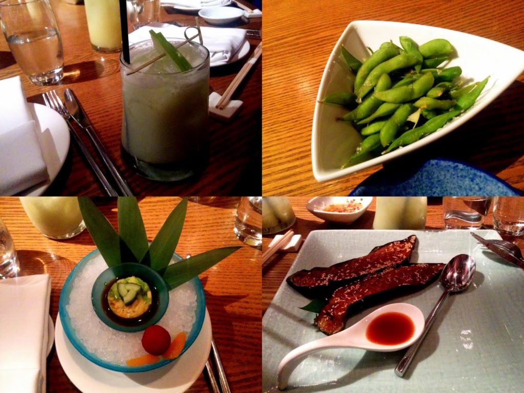 Das Ambiente war sehr modern, das Licht gedämmt mit offener Küche und mordernem Design. Es gibt sogenannte Signature Dishes, die Klassiker, die es in jedem Nobu-Restaurant weltweit gibt. Zusätzlich gibt es Gerichte, die landestypische Zutaten miteinbeziehen, so dass sich das Angebot in jedem Nobu Restaurant unterscheidet.
