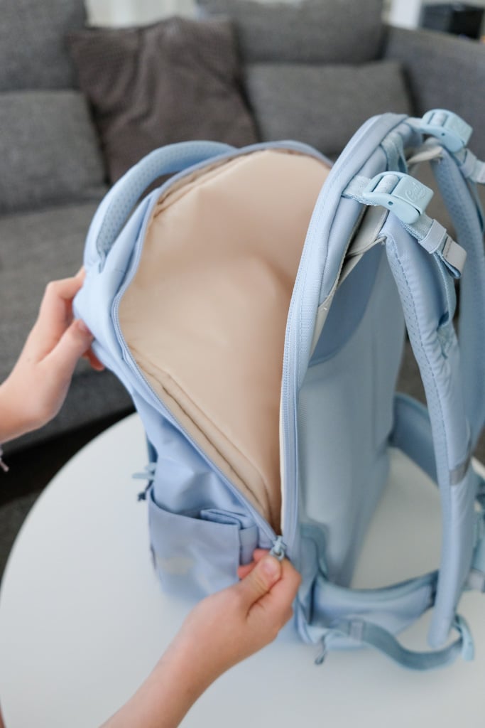 Das Hauptfach bietet viel Platz und ist in zwei Unterteilungen gegliedert, ergänzt durch eine leicht zugängliche Fronttasche und zwei Seitentaschen, die erweiterbar sind. Wirklich perfekt, wenn mal mehr Schulmaterial mitgenommen werden muss.